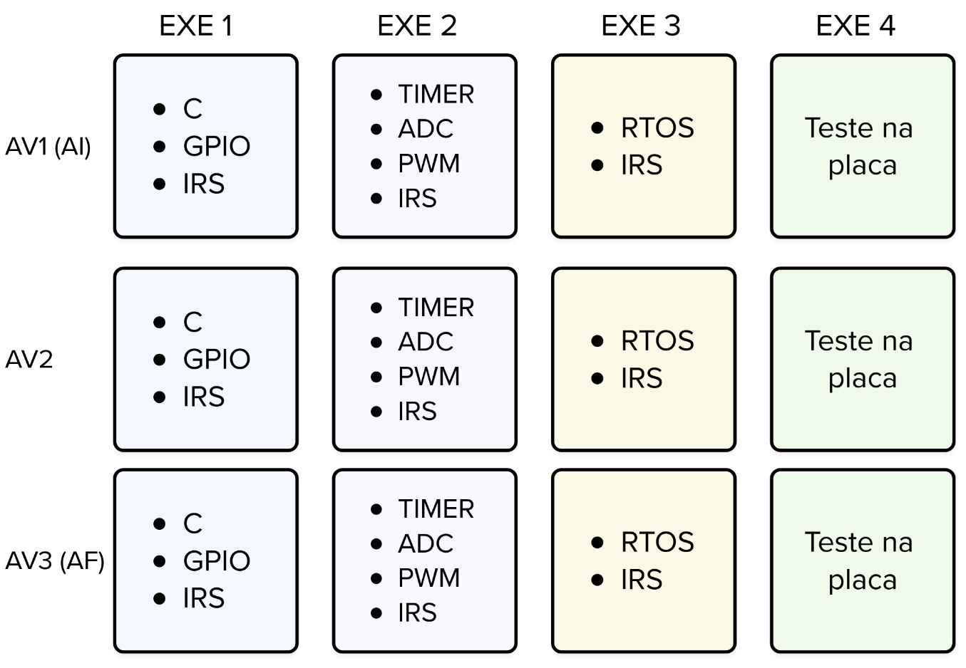 - exercício 4: verifica se o aluno sabe lidar com o hardware real