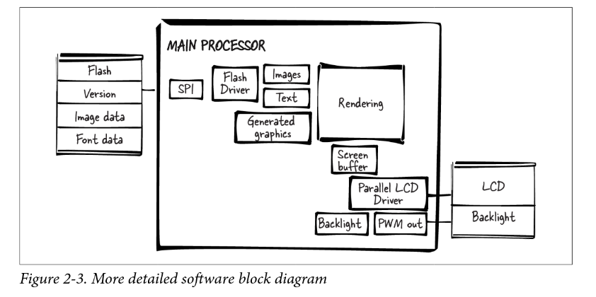 Aqui, a autora representa a solução de software para uma aplicação embarcada com display LCD. No caso específico ela não utiliza RTOS, mas da pra ter uma ideia de outros usos em sistemas embarcados.