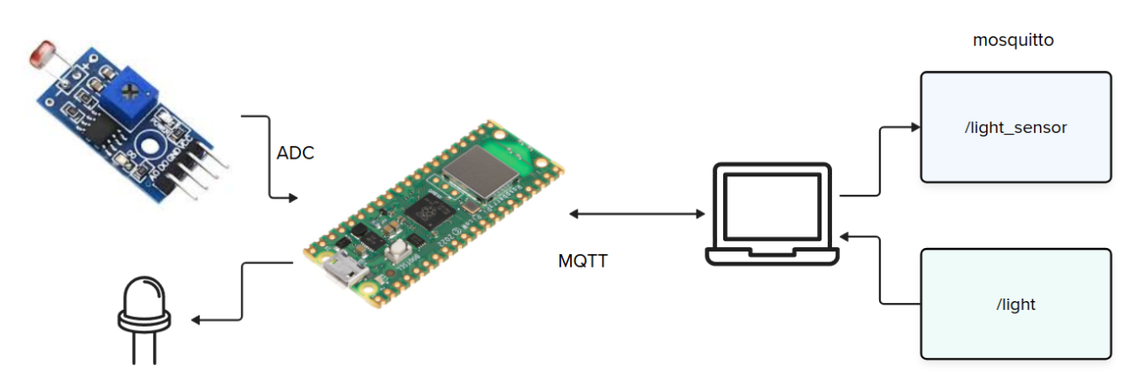 Um sistema embarcado que possua Wi-Fi e utilize o protocolo MQTT para enviar a um broker (Mosquitto) leituras periódicas de luminosidade do ambiente e permita acender um LED localmente.