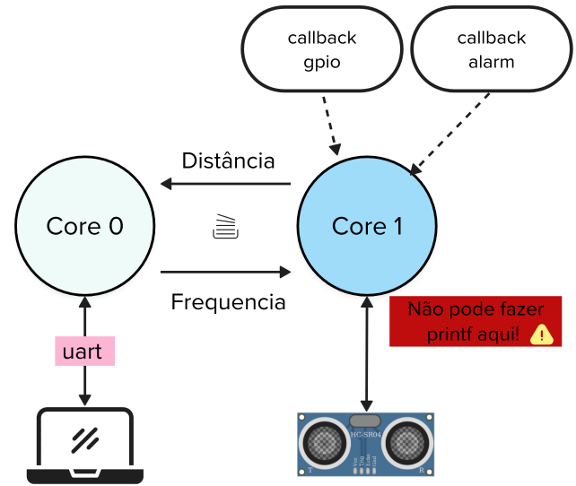 - Core 0 → Core 1: envio da frequência de leitura do sensor