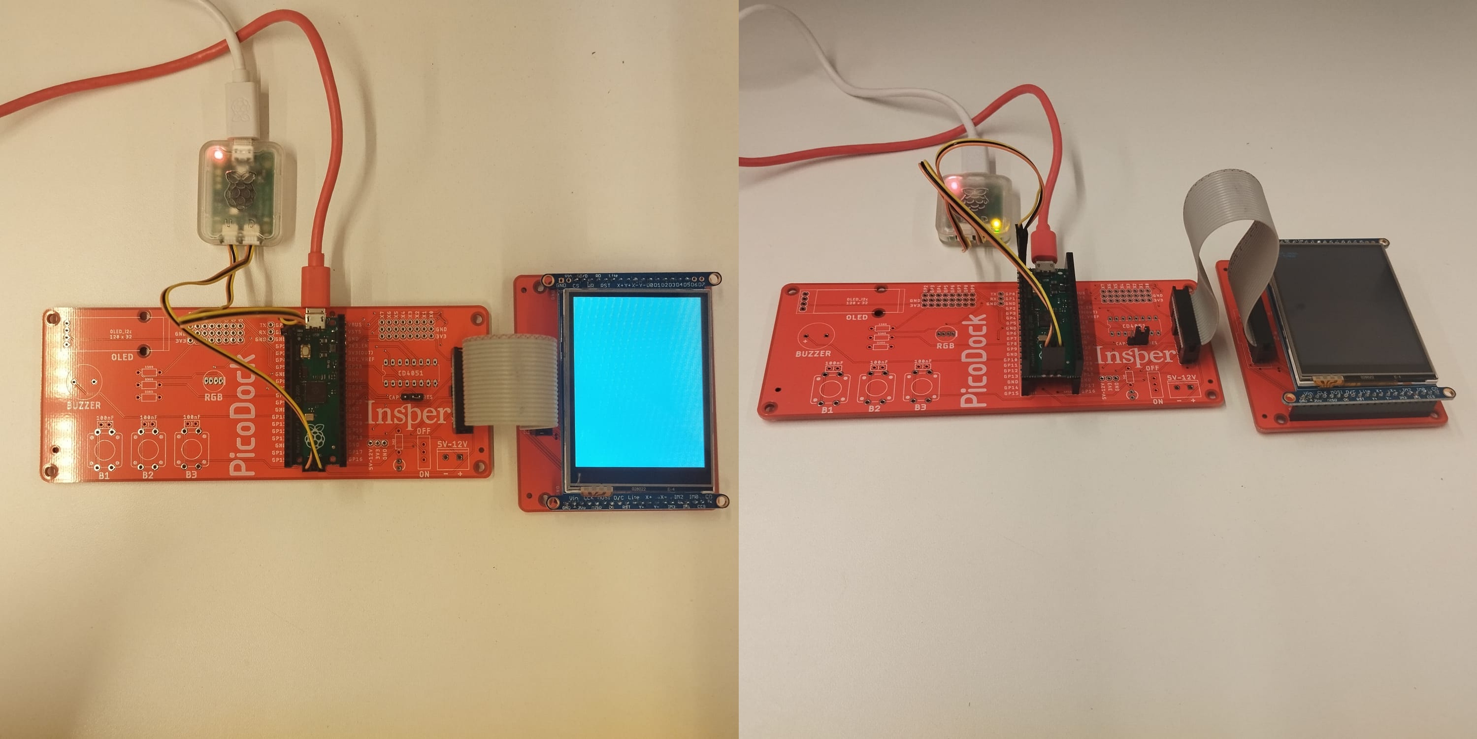 Desenvolvemos duas placas (PicoDock / TFT LCD - Dock) que facilita as conexões da PICO com o LCD (ili9341):